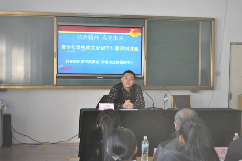 讲座中, 黑龙江仗义律师事务所律师、伊春职业学院讲师、市12355青少年服务热线专家团成员杨勇,围绕如何维护未成年人的合法权益及预防青少年违法犯罪,结合在实际办案中的典型案例对《中华人民共和国未成年人保护法》、《中华人民共和国预防未成年人犯罪法》进行了详细的讲解,为留守儿童上了一堂生动的法制教育课。