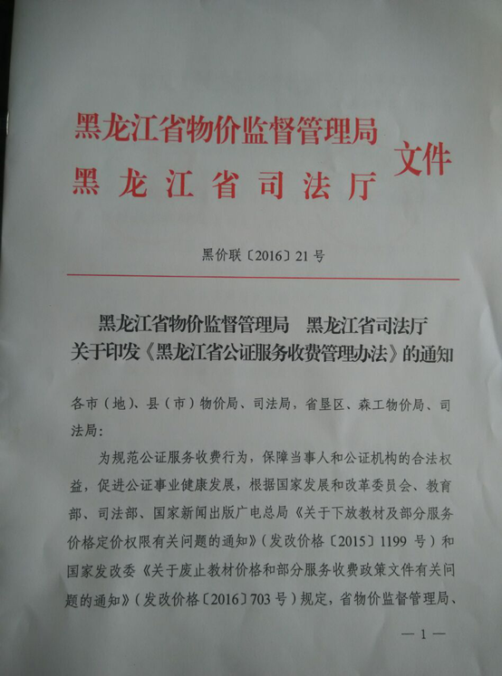 黑龙江省物价监督管理局 黑龙江省司法厅关于印发《黑龙江省公证服务收费管理办法》的通知